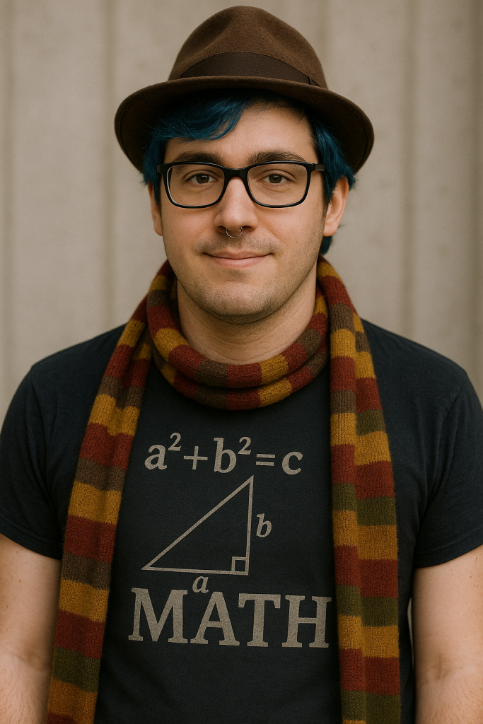 I am Dr J, and I love: classic Dr Who, tunnels and bunkers, trilbies, overcoats, AI, Python, Javascript, HTML, general coding, Very Good Shirts, gadgets, poetry, guitars, trains and stations, circuits and musical tech, GTA, stuff, things, tranclements, boots, suits, history, and coffee. I have two exotic jumpers and a Tom Baker scarf. I did well at school and was never first in line for football. My pals were, and still are, in the library and art room. In 40k, I favour Eldar and dislikes Scaven. I have visited more than one convention. I am a published editor and academic researcher, and also play in a band. I try to earn a living from websites like this. This is not my real picture – it was done by AI, of course.